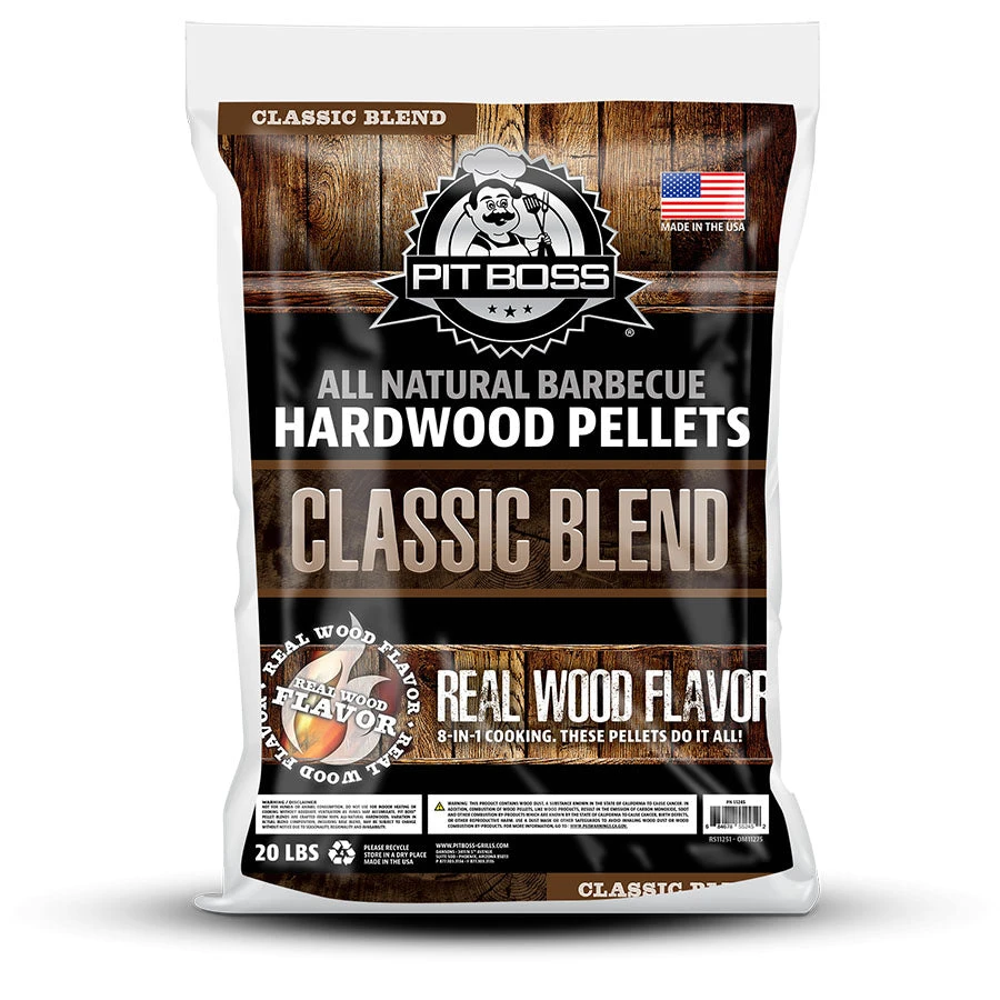 When it comes to choosing the right pellet blend for smoking, you just canāt beat a classic. Pit BossĀ® Classic Blend Hardwood Pellets are just the right combo of pecan, hickory, and mesquite wood for a full-bodied, robust flavor. This bold, southern blend perfectly complements chicken, pork, seafood, and vegetables. Get mouthwatering, all-natural flavor with our pellets, which are always free from unwanted additives like scents, sprays, chemicals, or glues.Ā Ā