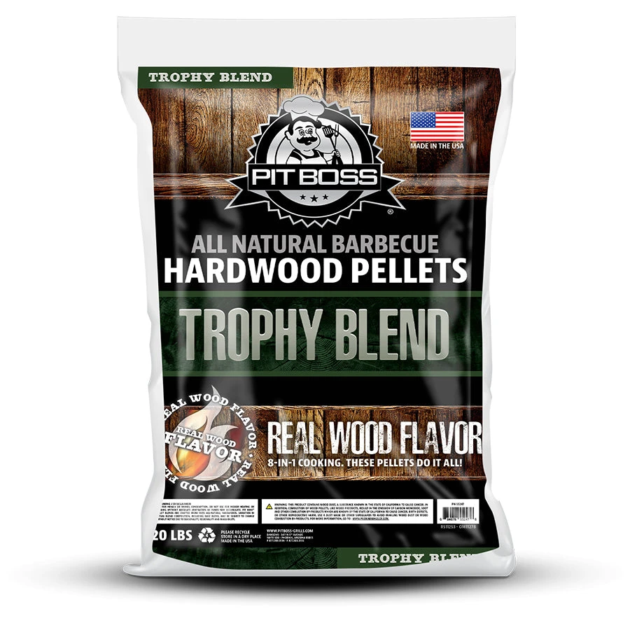 Calling all outdoorsmen. We’ve got what you need to complete your field-to-grill lifestyle. Specially created to complement wild game, our Pit Boss Trophy Blend Hardwood Pellets were made to give your meat a subtle yet savory smoke flavor without overwhelming it. Enjoy the mouthwatering aroma of the white oak, red oak, and hickory hardwoods with the Pit Boss Trophy Blend, which is always free from unwanted additives like scents, sprays, chemicals, or glues.Â