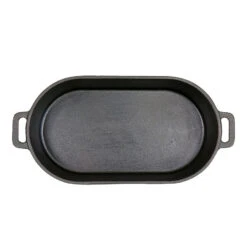 The Pit Boss® Cast Iron Roaster Pan and Griddle Lid is pre-seasoned and ready to use out of the box. It’s safe for use in oven or campfire, and can be used on gas, charcoal, or wood pellet grills.Â