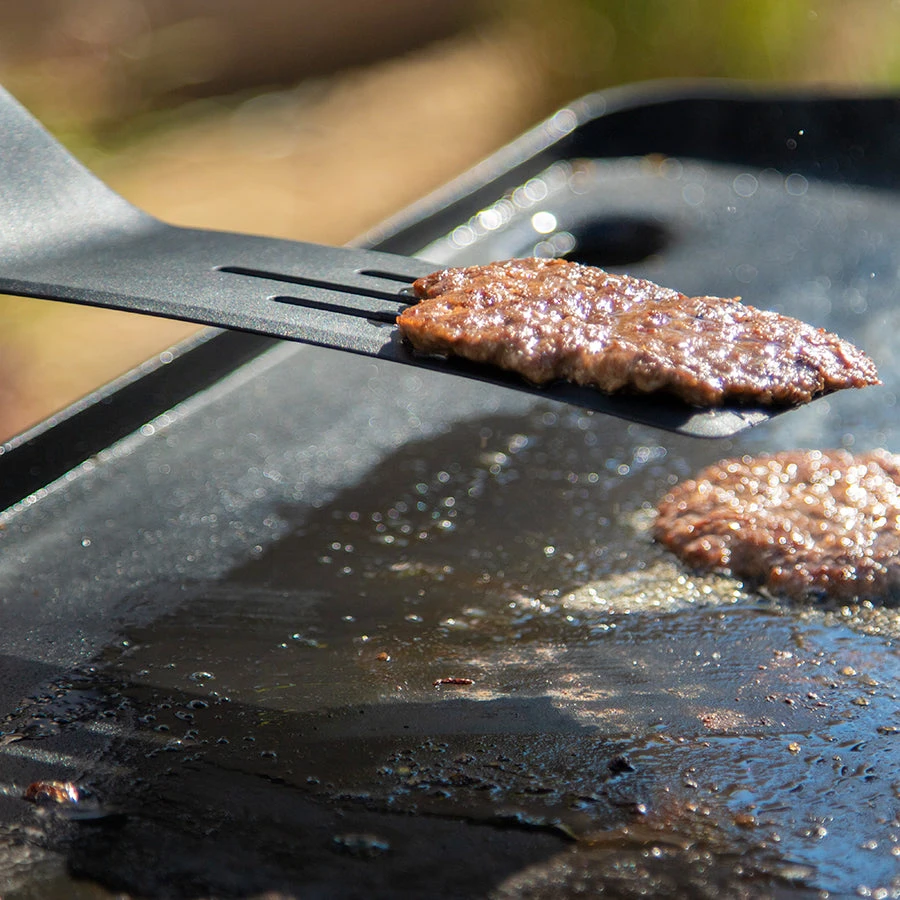 Upgrade your griddle tool selection with the Ultimate Griddle Spatulas. This set includes a perforated spatula and a standard turner spatula, which are perfect for burgers, pancakes, or scrambled eggs. Both Ultimate Griddle Spatulas are constructed with nylon polymer that can withstand high temperatures and are easy to clean.